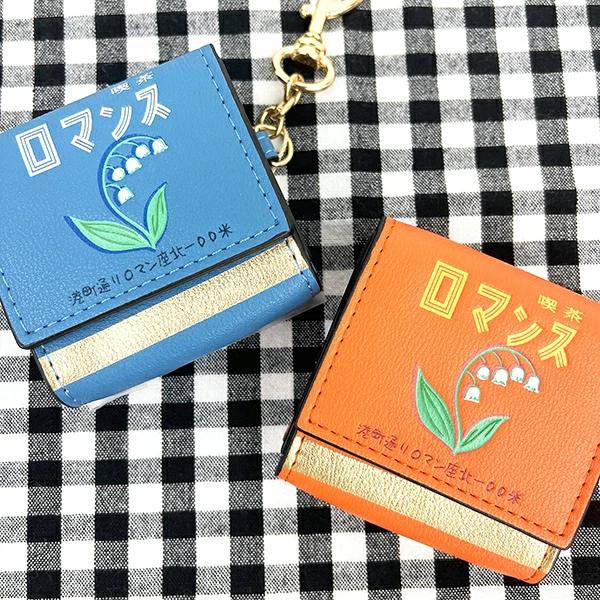 架空の純喫茶「喫茶ロマンス」をイメージしたレトロなシリーズ◎レトロな蓋付きマッチ箱をイメージしたポーチチャーム♪喫茶店の架空の住所もプリントされているところがユニーク☆彡目薬や一部のワイヤレスイヤホンが入るサイズです♪ナスカン付きなのでバッグやベルトなどにつけてもかわいい♪