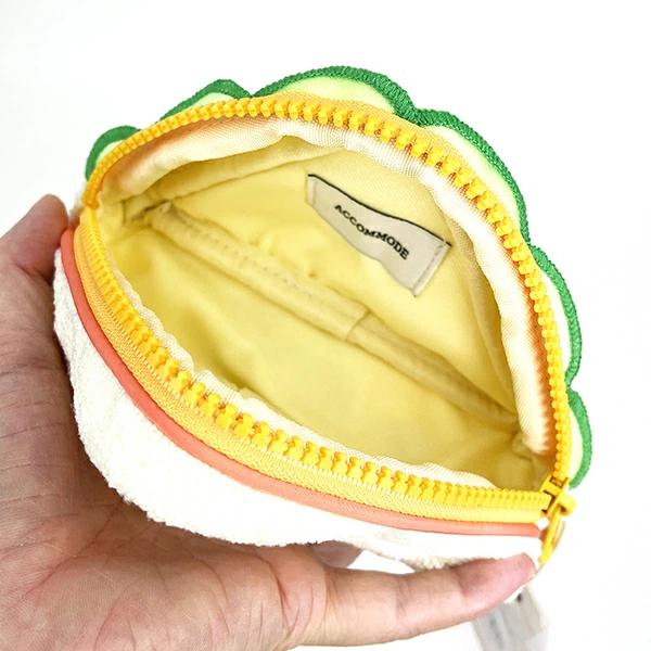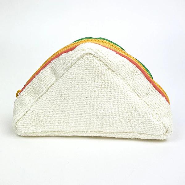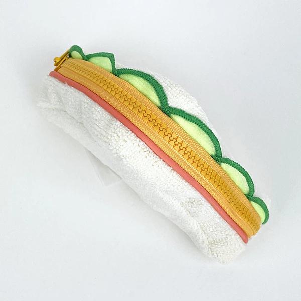 架空の純喫茶「喫茶ロマンス」をイメージしたレトロなシリーズ◎喫茶店でおなじみのハム・きゅうり・タマゴのシンプルなサンドイッチをイメージしたポーチ♪本体はパイル生地でふわふわした食パンを表現☆彡底面にはさりげなく共色でSANDWICHの文字を刺繍しています☆彡