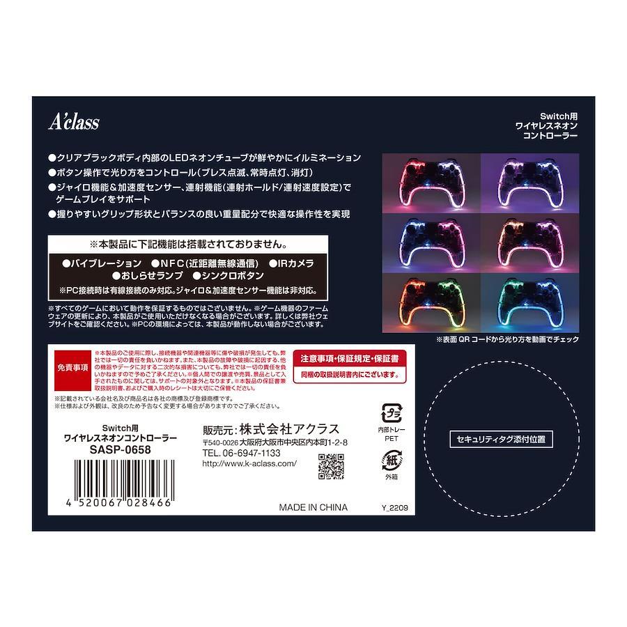 通常1-5営業日で発送≪新品・未開封品≫:クリアボディの内部が鮮やかに光る! ジャイロ&連射対応のワイヤレスコントローラー!無線接続対応、ジャイロ機能&加速度センサー搭載、連射設定、連射ホールド、連射速度変更可能握りやすいグリップ形状と持ちやすい重量感ゲームシーンを鮮やかに彩るLEDイルミネーション機能株式会社アクラスは、2023年に創業30年を迎える、大阪に本社を置くサードパーティメーカーです。長年のノウハウをもとに企画、開発したゲームパーツやトレカサプライ、ホビー関連グッズなどを、お客様にお届けいたします。商品についてご不明な点がございましたら、弊社カスタマーサポートへお気軽にお問い合わせください。