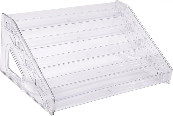 デザイン: 5段の階段式構造で、アイテムを見やすく効果的に展示できる透明アクリル製ディスプレイスタンド。
