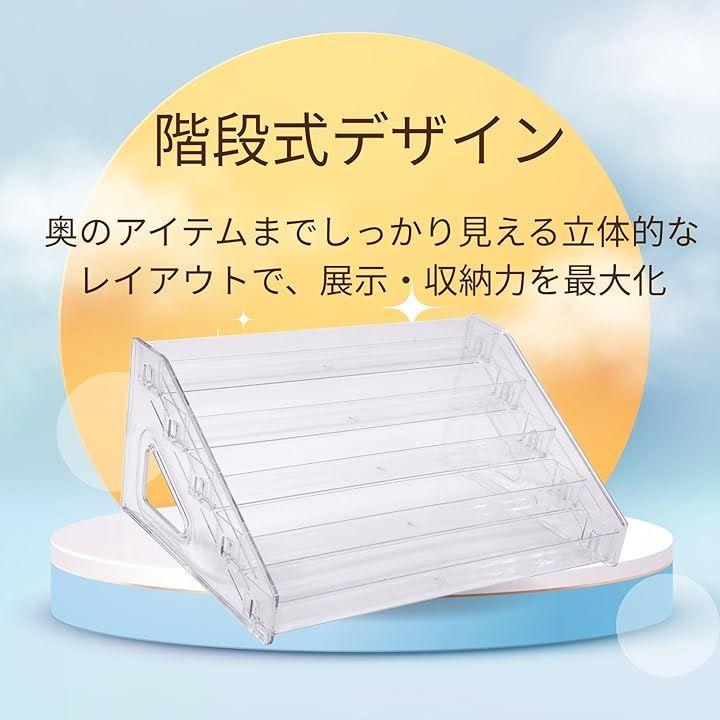 あなたの大切なコレクションや日常使いの小物を、もっと美しく、もっと便利に飾りませんか? ISEFUJI 5段アクリルディスプレイスタンドは、立体感のある階段式デザインで、後列のアイテムもしっかり見える理想の展示空間を演出します。