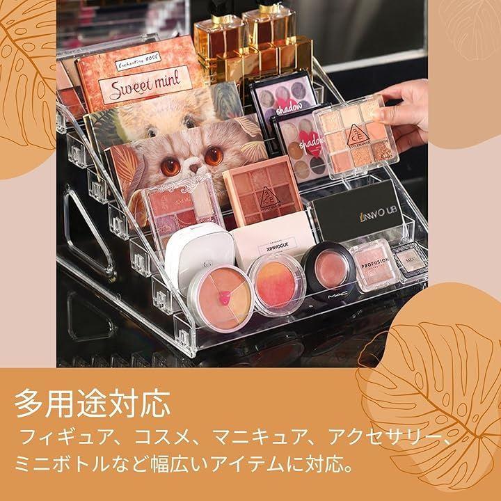 フィギュアやコスメ製品など、様々な小物をエレガントに展示できる多目的な陳列台として設計されています。