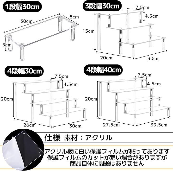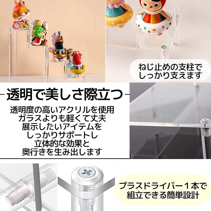 「魅力的なディスプレイに」 4段(3段)の階段状のアクリルスタンド。