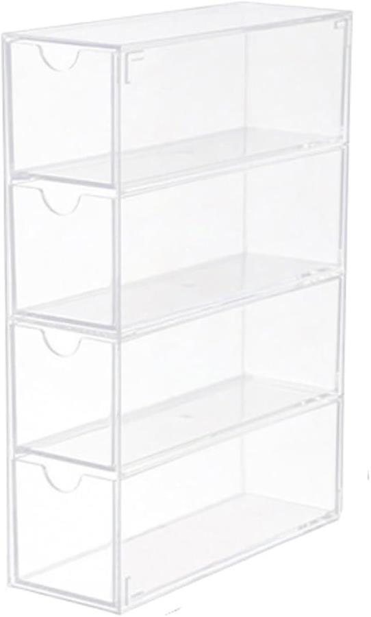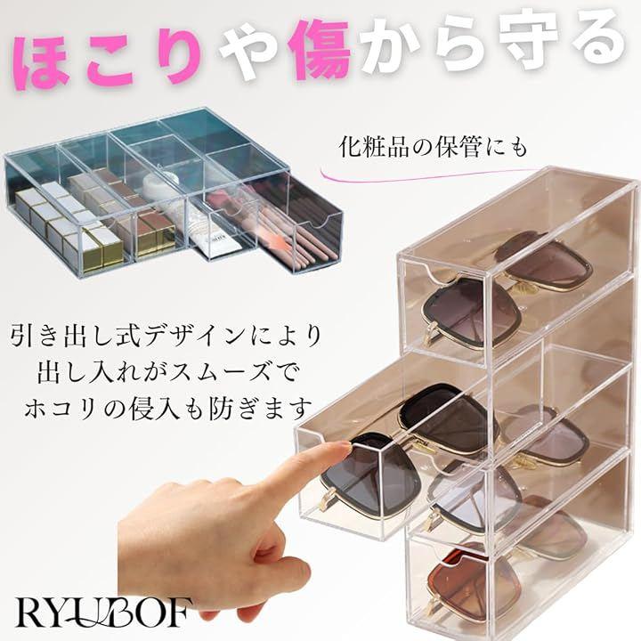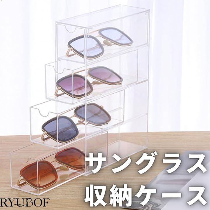 透明度の高いアクリルを使用した4段式サングラス収納ケースは、機能性と美しさを兼ね備えたアイテムです。