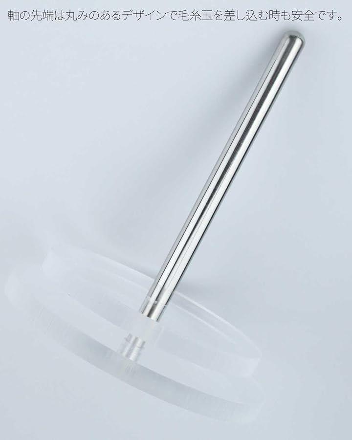 軸の先端は丸みのあるデザインで毛糸玉を差し込む時も安全です。