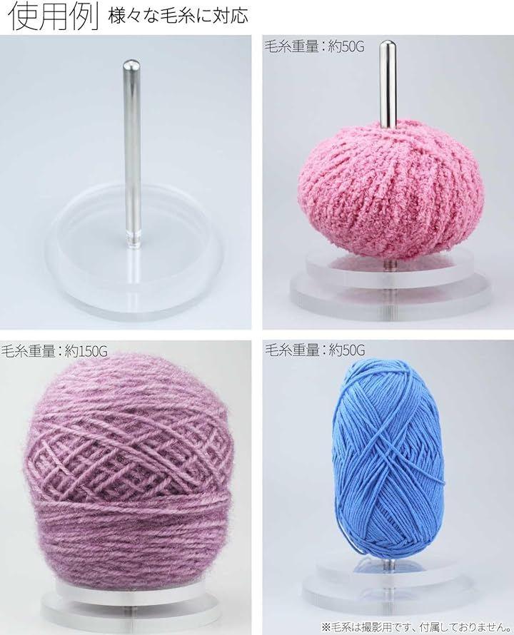 編み物の際に毛糸が転がるのを防ぎ、糸をスムーズに引き出せるヤーンホルダーです。