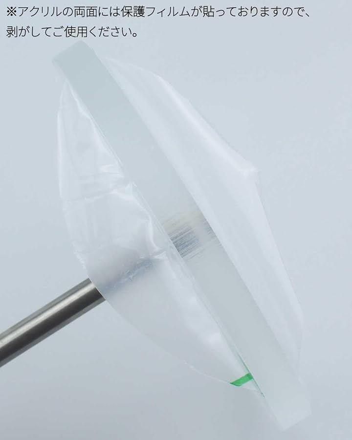 アクリルの両面には保護フィルムが貼っておりますので、剥がしてご使用ください。
