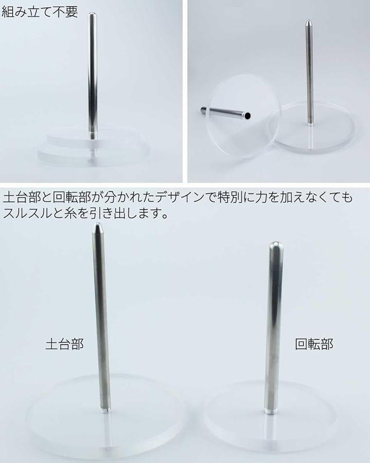 土台部と回転部が分かれたデザインで特別に力を加えなくてもスルスルと糸を引き出します。