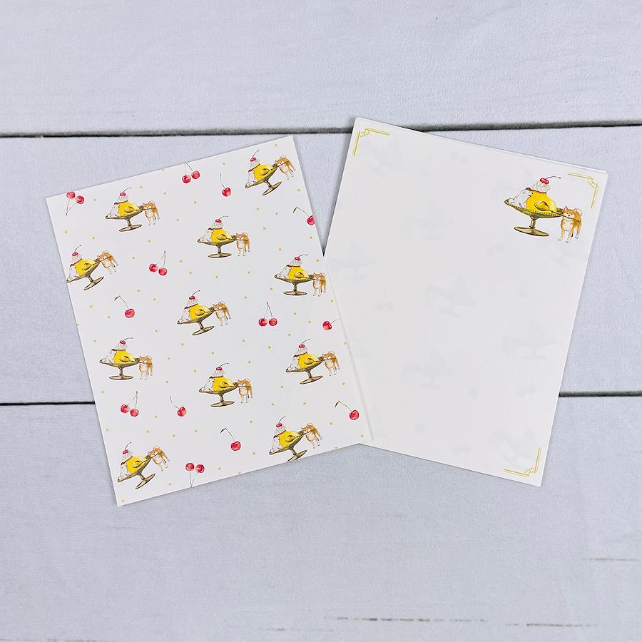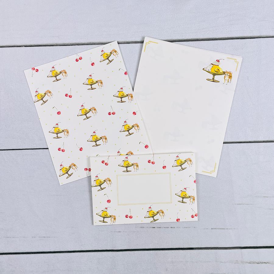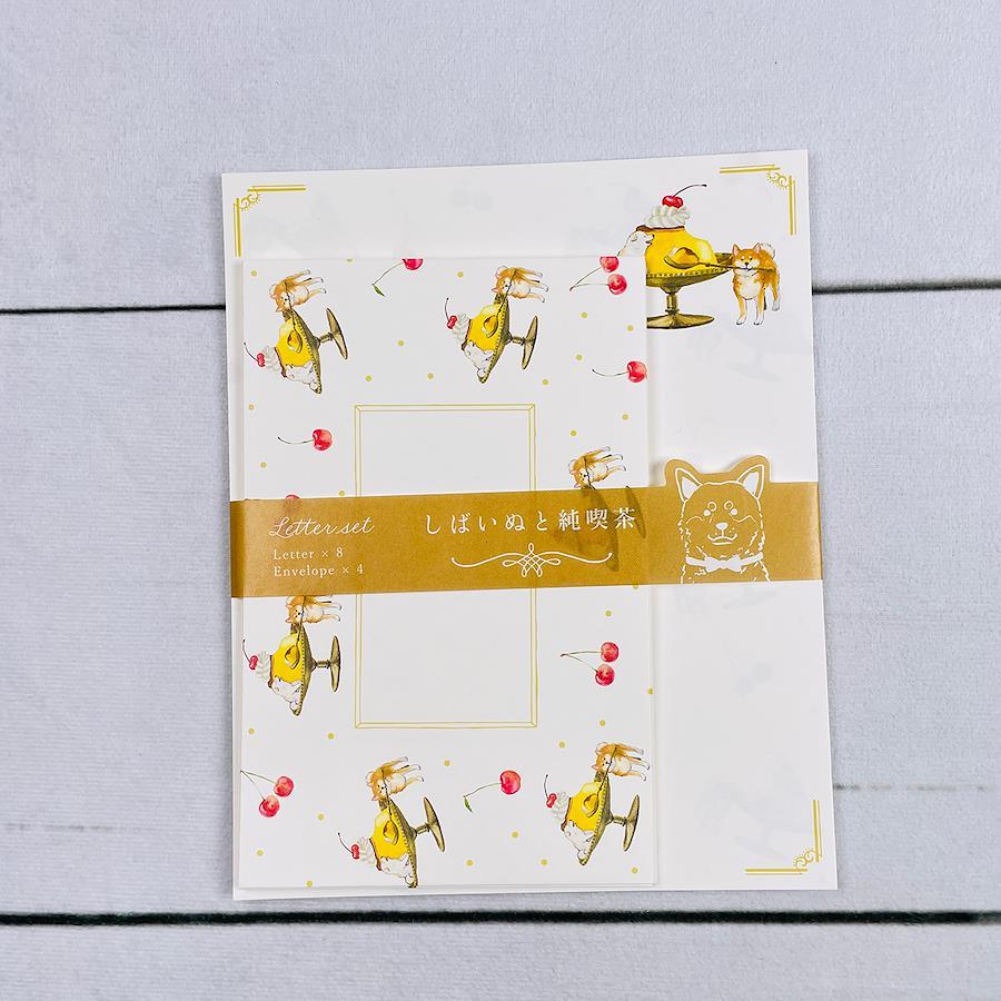 純喫茶風のデザインがレトロかわいいレターセットです。両面印刷の便箋で、しばいぬたちのかわいさを隅々まで楽しめます。