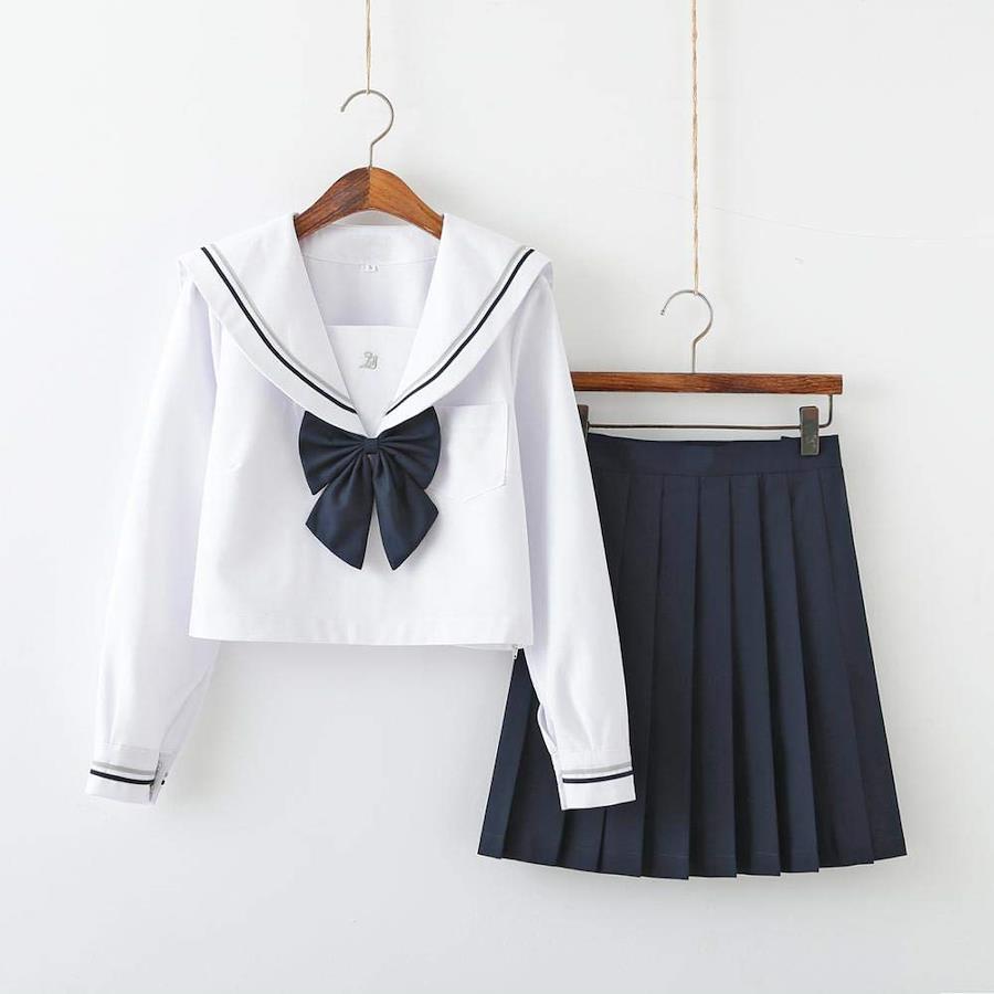【素材】ポリエステル、綿;ポリエステル&綿というものは、ソフトと耐用性ある素材です。セーラー服はポリエステル&綿を作らて、しっかりしております。ドレープ感があり、着用で不収縮です。【セット内容】3点セット:トッ プス+スカート+蝶結び;半袖や長袖があります~春から冬まで着用できます~スッキリとまとまった清楚な感じのセーラー服です。【特色】生地はもちろん、更に丁寧な縫製を持って、見えない細かな部分にまでこだわりの仕上がりです。関西襟のデザインで、女子高校生らしい~【お勧め】紺色のプリーツ スカート:ふわ?り感で履くだけでスラリとした美脚に魅せます。歩くたびにふわっと揺れるプリーツスカートは女の子らしさたっぷり。女子力up!【シーン】コスプレ、仮装パーティーや普段着の場合でも似合いますよ。