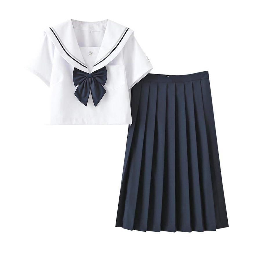 【素材】ポリエステル、綿;ポリエステル&綿というものは、ソフトと耐用性ある素材です。セーラー服はポリエステル&綿を作らて、しっかりしております。ドレープ感があり、着用で不収縮です。【セット内容】3点セット:トッ プス+スカート+蝶結び;半袖や長袖があります~春から冬まで着用できます~スッキリとまとまった清楚な感じのセーラー服です。【特色】生地はもちろん、更に丁寧な縫製を持って、見えない細かな部分にまでこだわりの仕上がりです。関西襟のデザインで、女子高校生らしさ抜群~【お勧め】紺色のプリーツ スカート:ふわ〜り感で履くだけでスラリとした美脚に魅せます。歩くたびにふわっと揺れるプリーツスカートは女の子らしさたっぷり。女子力up!【シーン】コスプレ、仮装パーティーや普段着の場合でも似合いますよ。【保証付き】Aculldoはいつもお客様に心地良いショピング体験を提供するために努力しています。きっと満足できる商品を提供します。もし困ることありましたら、ご遠慮なく直接に連絡ください。