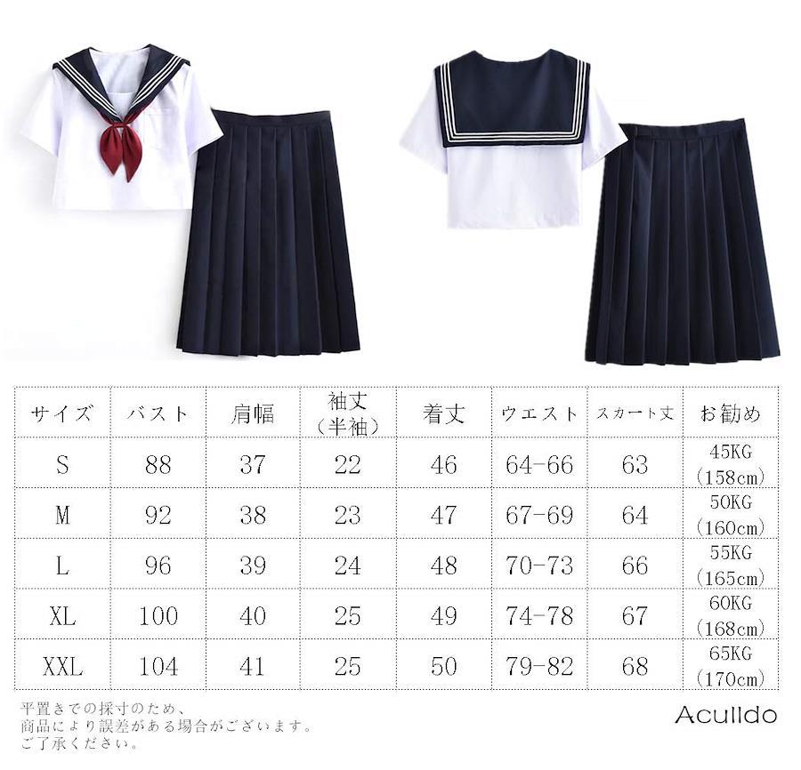 登録情報取り扱い案内 洗濯機洗い 【素材】ポリエステル70%、綿30%; 生地はソフトと耐用性ある素材です。 コットン&ポリエステルを作らて、しっかりしていました。 確かな縫製技術を持った工場で丁寧に仕上げています。【デザイン】 定番なセーラー服です。 清純な本格制服で女子高生に演出します。 セーラー服半袖は清潔感を持ちます。ミニ丈とAラインの組み合せは美脚効果もあります。【見た目】関西襟のデザインで、特別な味があります。 気軽に学生時代にタイムスリップして、青春時代を味わえます。【セット内容】 トップス+スカート+ネクタイ:スッキリとまとまった清楚な感じのセーラー服です。【ご用途】 撮影やコスプレ、仮装パーティーや普段着の場合でも似合いますよ。ご注意:出荷時は型崩れを防ぐため、仕付け糸で留めてあります。不良品ではありません。ご試着後、ご着用時にはずしてください。