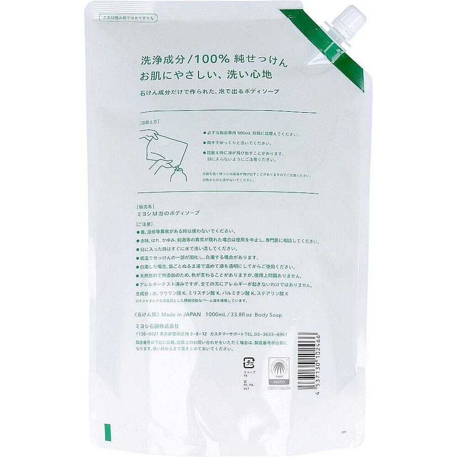 お肌にやさしい洗い心地。石けん成分だけで作られた、泡で出るボディソープ。●合成界面活性剤、香料、防腐剤、すべて不使用。●大容量詰替用。