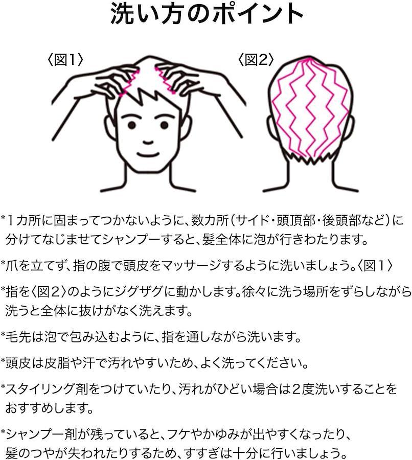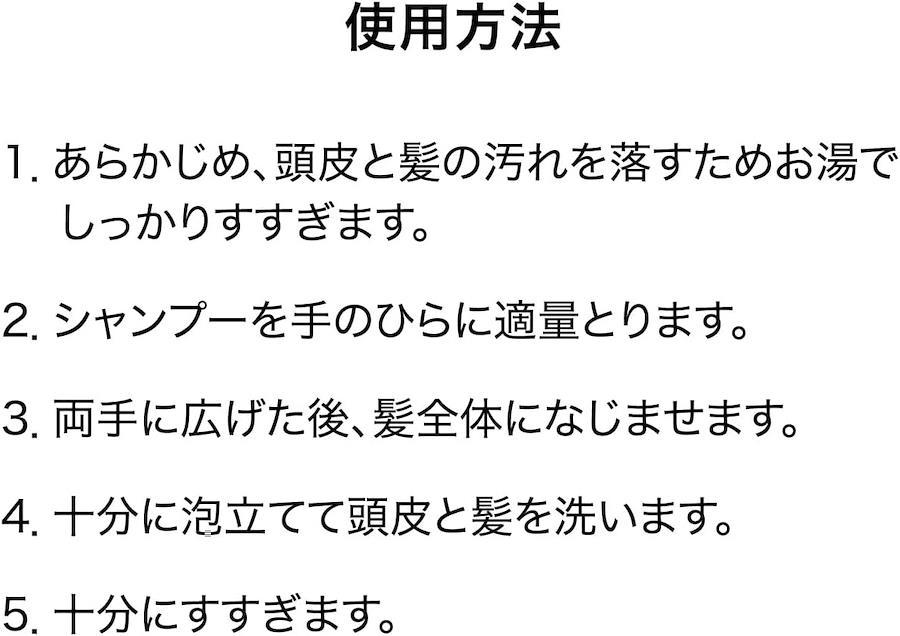 ●髪をぬらしてから適量を髪全体につけ、十分に泡立てながら頭皮をマッサージするように洗い、その後よくすすいでください。
