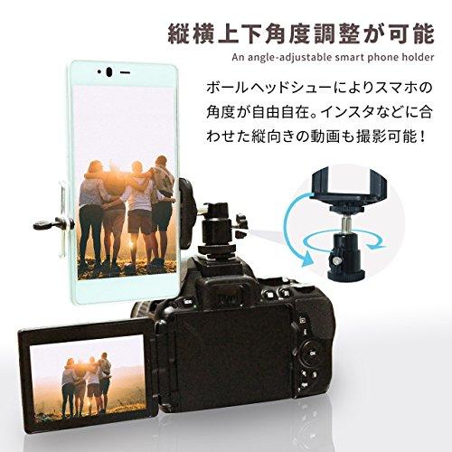 ? カメラで写真を撮りながらスマートフォン用にも写真を撮ったり、スマホで動画撮影をしてながら一眼レフで写真を同時に撮影するなど使い方色々。? ボールヘッドシューとホルダーの取り付け部分の2段階角度調整によって、手軽に好みの角度に調整可能。? 角度調整によってスマホを縦にも出来るのでInstagramやtik tok用の動画撮影を並行して行うこともできます。? [材質]ABS, アルミ?[サイズ]約 135 x 52 x 28 mm?取り付け部分:約18mm四方 [重さ]約 55 g? 【安心の6ヶ月無料保証】初期不良品が出ないよう出荷前に検品をしています。万が一不具合があった場合は、ご連絡いただければ速やかに対応させて頂きます。