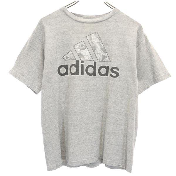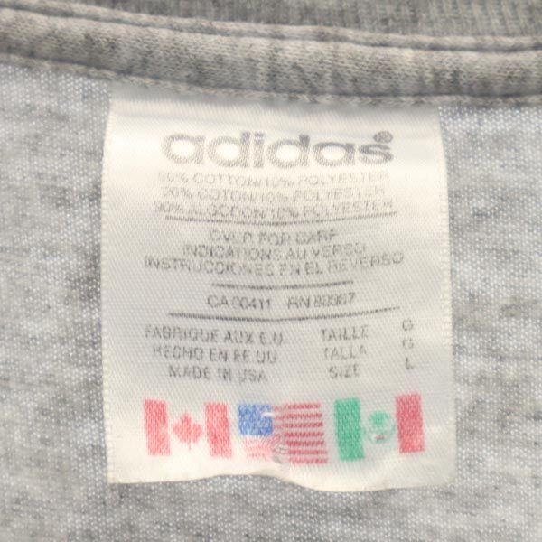 アディダス 90s USA製 オールド ロゴプリント 半袖 Tシャツ L グレー系 メンズ