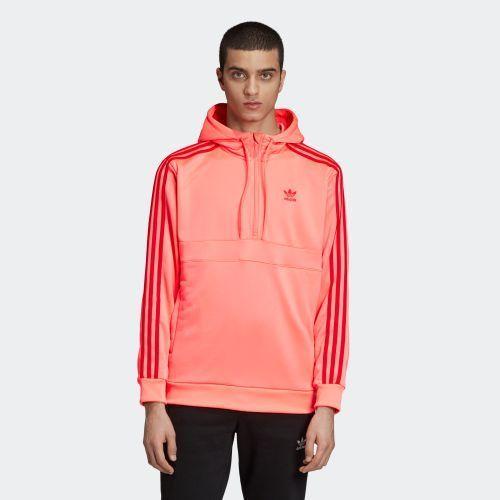 【DETAIL】・70年代のスポーツウェアからデザインの着想を得たフード付きトップ。・1970年代のアディダスのヘリテージデザインから着想を得たスウェットシャツ。・素材にソフトなフレンチテリー[裏毛]を採用した、ハイネックのハーフジップ プルオーバースタイルで、便利なカンガルーポケット付き。