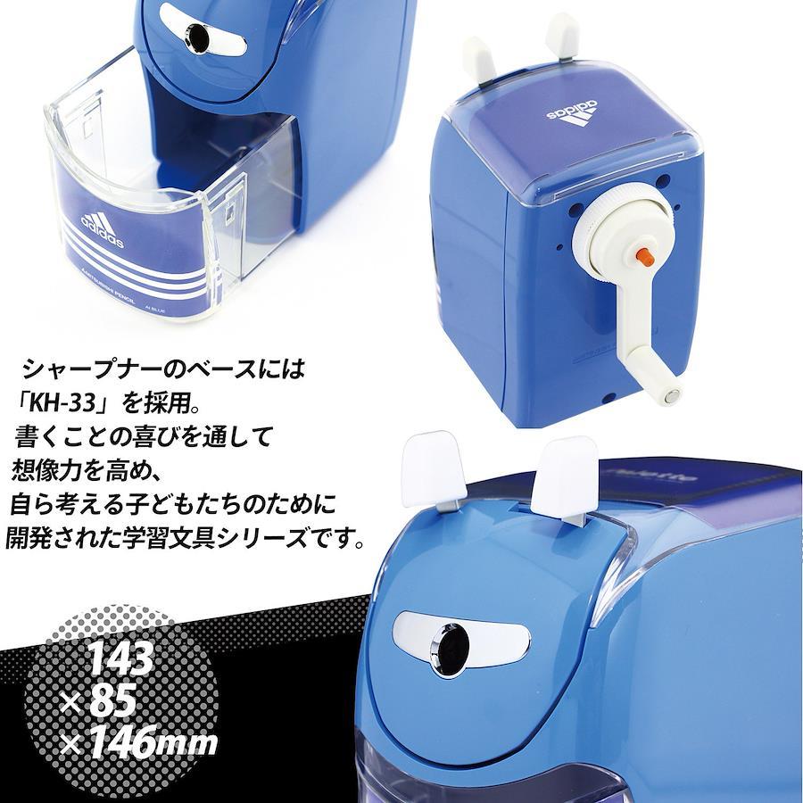 アディダスから手動式鉛筆削りが登場。【アディダス/adidas】全てのアスリート達の最高のスポーツパフォーマンスのために設計・開発し、全てのアスリート達の「不可能/目標」を達成するためにあるブランド。象徴であるスリーストライプスをモチーフにした右に向かって伸びるスリーストライプスは、未来へ向けてのチャレンジと目標の達成を表しています。