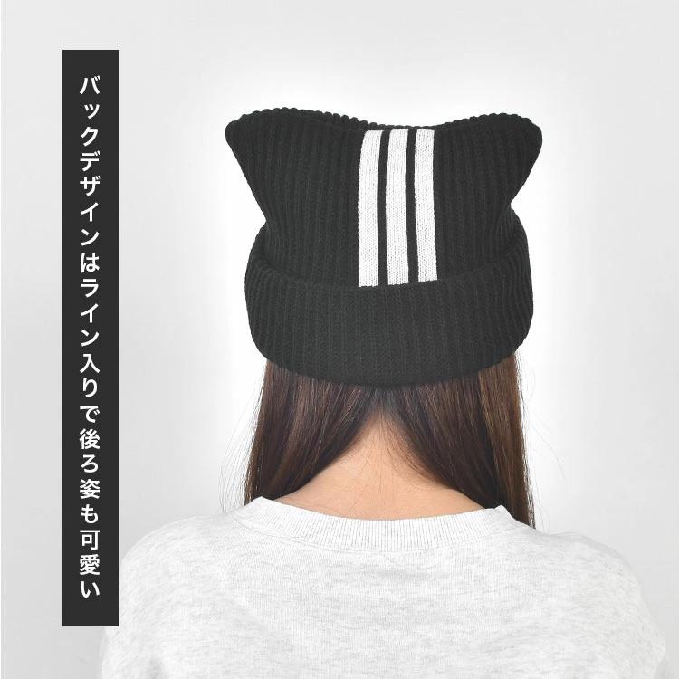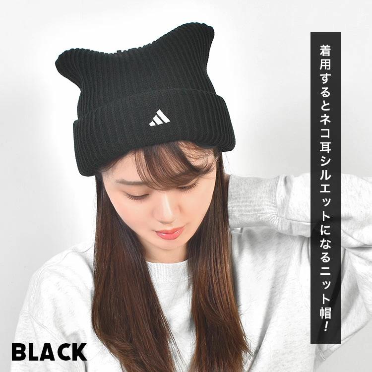 【猫耳ニット帽】着用すると猫耳シルエットになるアディダスのニットキャップ。バックデザインはライン入りで後ろ姿も可愛い♪アディダスならではのスポーティな雰囲気も持ち合わせた、アクリル100%素材の被り心地の良いニット帽です。