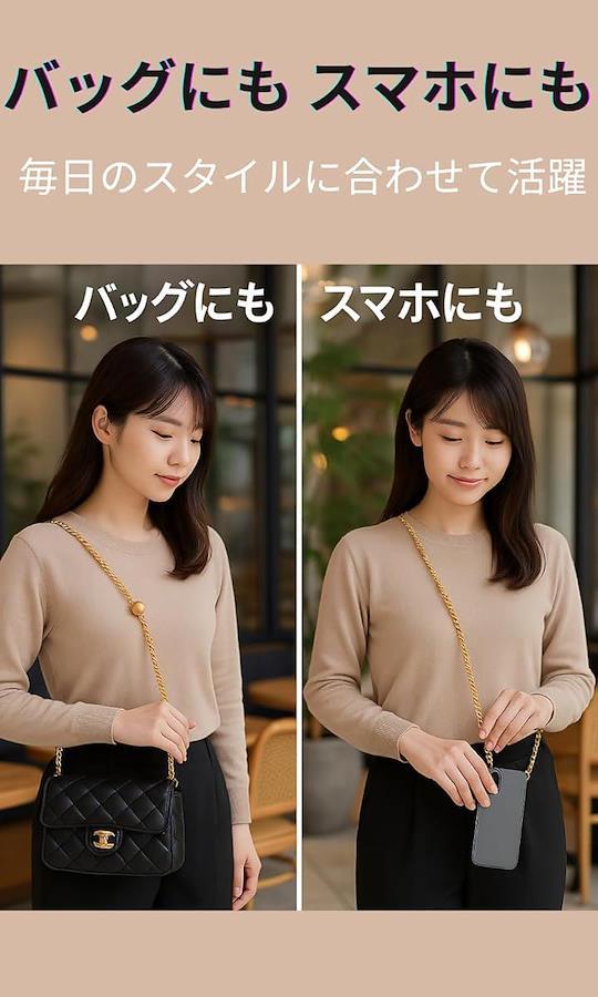 付け替え用バッグチェーンは女性らしい華やかさを添えるファッション小物。