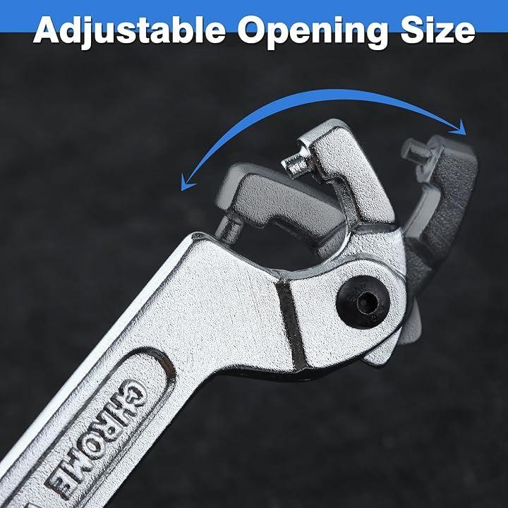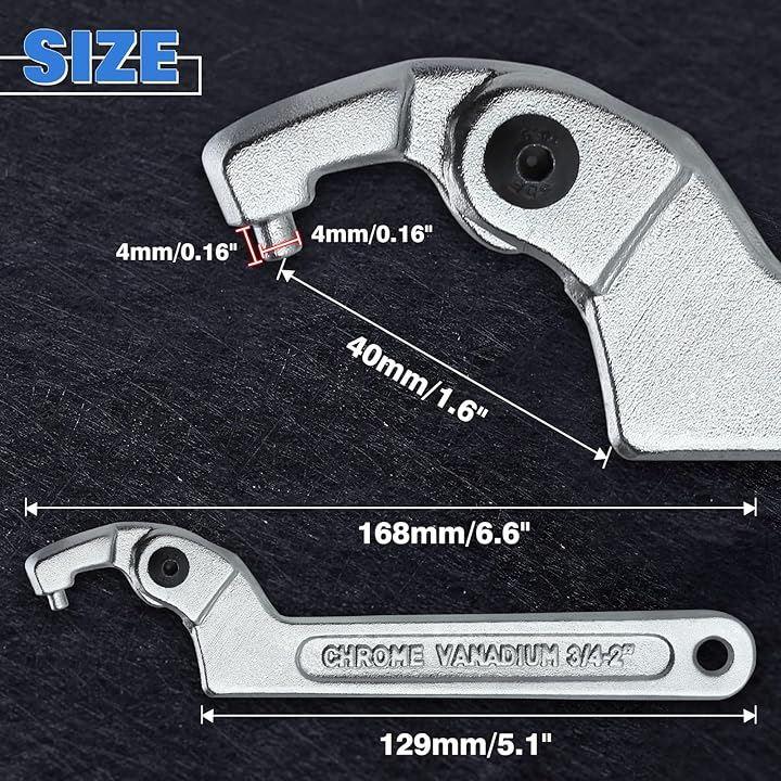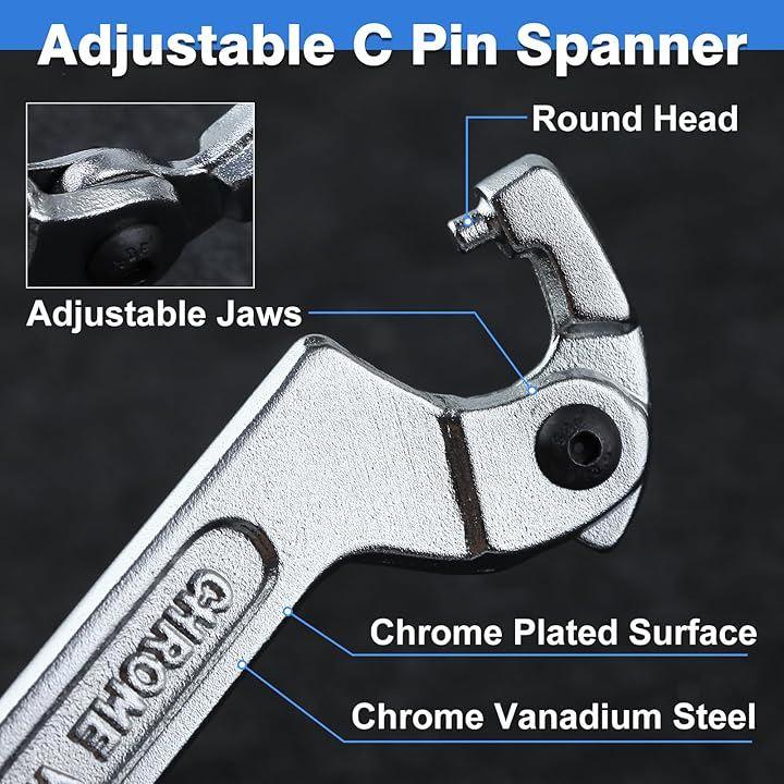 プレミアムクロムバナジウム鋼から作られたこの調整可能なピンスパナレンチは、3/4~2インチ(19~51ミリ)のサイズに適合する丸いヘッドデザインを提供します。