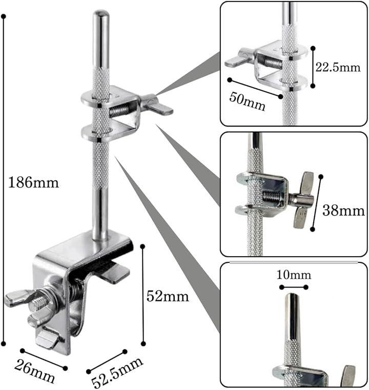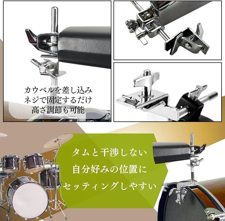 カウベルだけでなく、他の打楽器やアクセサリーにも対応できる汎用性があり、さまざまなドラムセットに適応します。