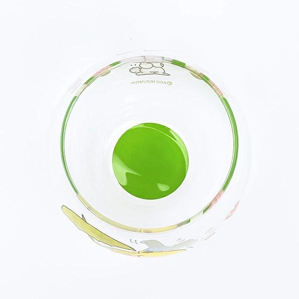 水森亜土の世界観がギュッと詰まっているデザインの丸グラスです。ジュースやお茶を入れてみるとまるでデザインが浮いているように見える♪専用の箱に入っているのでプレゼントにもおすすめです!カラー違いで女の子もございますので揃えても可愛いですよ♪