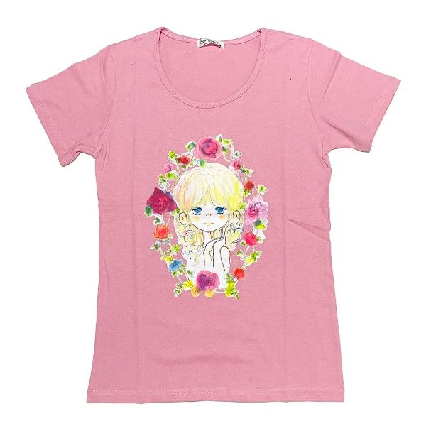 水森亜土の半袖プリントTシャツです。美しい女の子×バラのデザインがとってもキュート☆S、M、Lのサイズ展開となりますので家族やお友達とお揃いにしやすいのが嬉しい~♪1枚持っていれば便利に使えます☆彡【サイズ:Lサイズ(バスト:86~94cm、身長:154~162cm)】