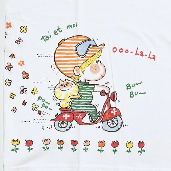 水森亜土の可愛いらしいデザインのTシャツです。綿100%でさらりと着られます。シンプルかつおしゃれなデザインなので普段使いにぴったりです☆彡【サイズ】身丈:70cm×身幅:52cm