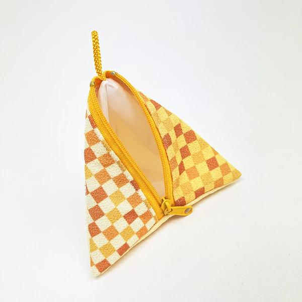ちりめん生地の和テイストがかわいいシリーズです♪珍しい三角形のポーチは持っているだけでワクワクしちゃう可愛さ◎ちょっとしたものを入れて亜土ちゃんとお出かけしてくださいね♪