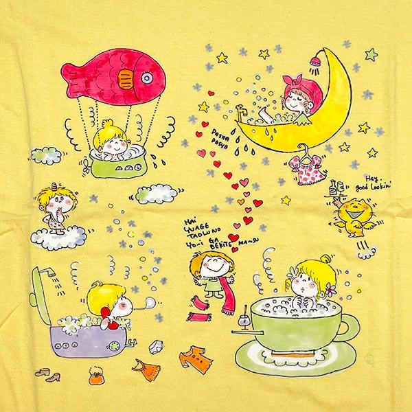 水森亜土の半袖プリントTシャツです。可愛いキャラクターたちが色んなお風呂に入っているデザインがとってもキュート☆S、M、Lのサイズ展開となりますので家族やお友達とお揃いにしやすいのが嬉しい~♪1枚持っていれば便利に使えます☆彡【サイズ:Lサイズ(バスト:86~94cm、身長:154~162cm)】