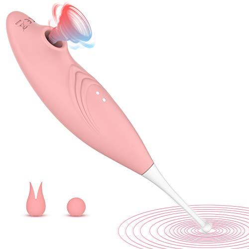 Adorime Pink Vibrator for Women, Squirting, Suction, Intense Vibration, 2 Heads, Clitoral Stimulation, Waterproof, USB Rechargeable, Soft Material