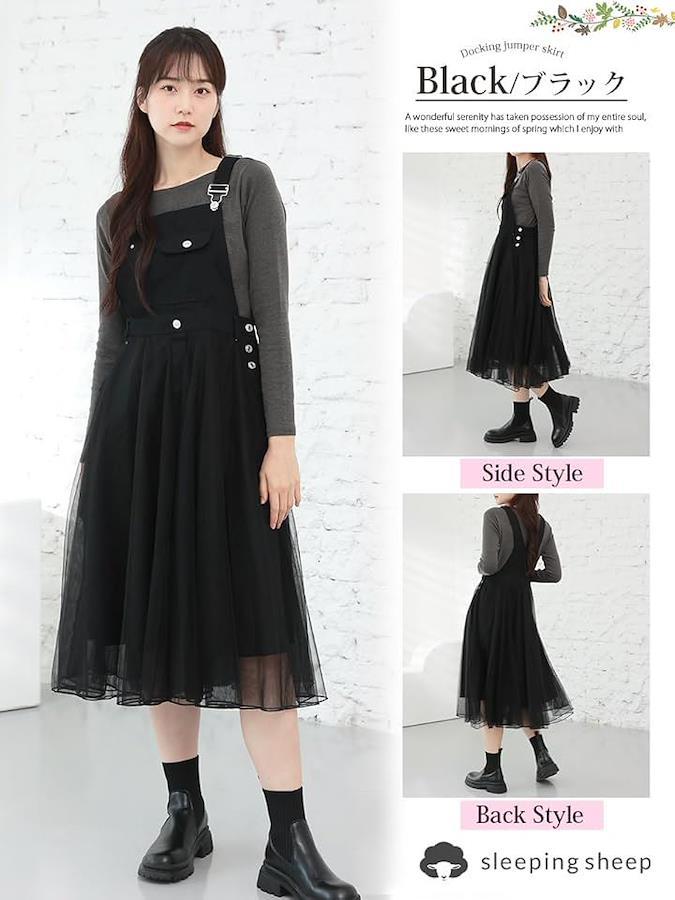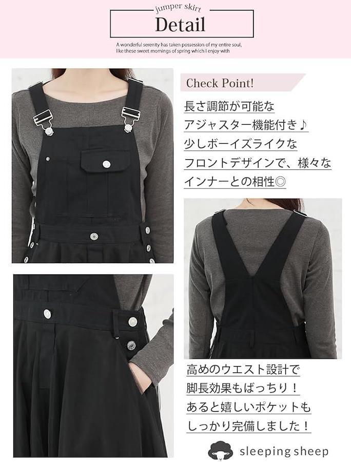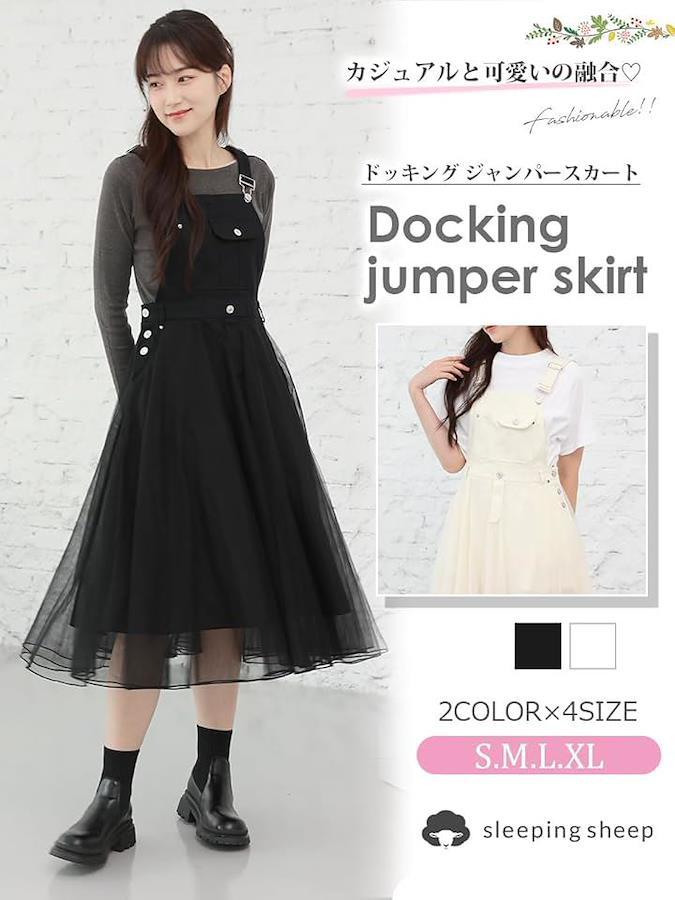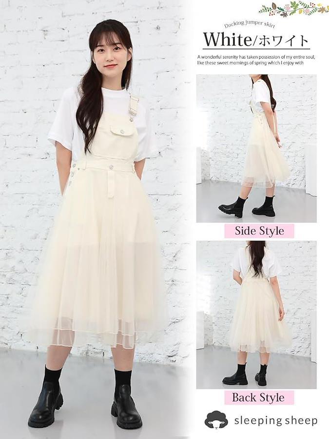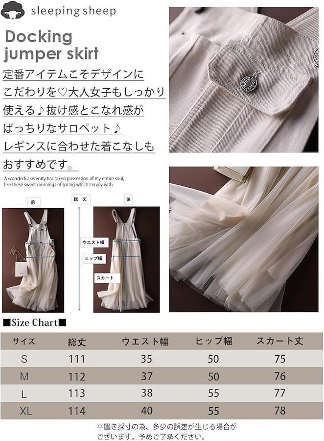 カラー:ブラック・ホワイト 素材:デニム部分:コットン スカート部分:ポリエステル 中国製 サイズ:S・M・L・XL寸法: 「Sサイズ」総丈111cmウエスト幅35cmヒップ幅50cmスカート丈75cm 「Mサイズ」総丈112cmウエスト幅37cmヒップ幅50cmスカート丈76cm 「Lサイズ」総丈113cmウエスト幅38cmヒップ幅55cmスカート丈77cm 「XLサイズ」総丈114cmウエスト幅40cmヒップ幅55cmスカート丈78cm