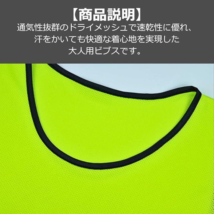 「商品説明」通気性抜群のドライメッシュで速乾性に優れ、汗をかいても快適な着心地を実現した大人用ビブスです。