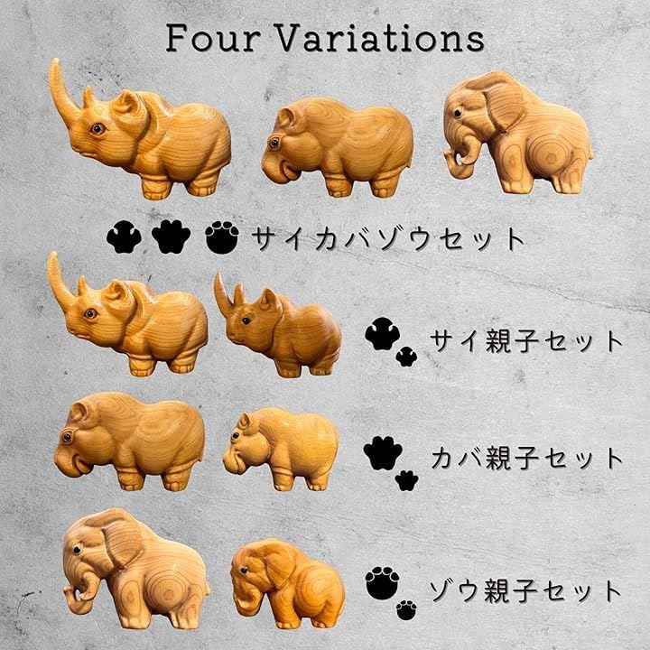 それぞれの動物の特徴を活かしながら、ヒノキ科の崖柏の美しい木目と清々しい香りを生かしたナチュラルなオブジェに仕上げました。