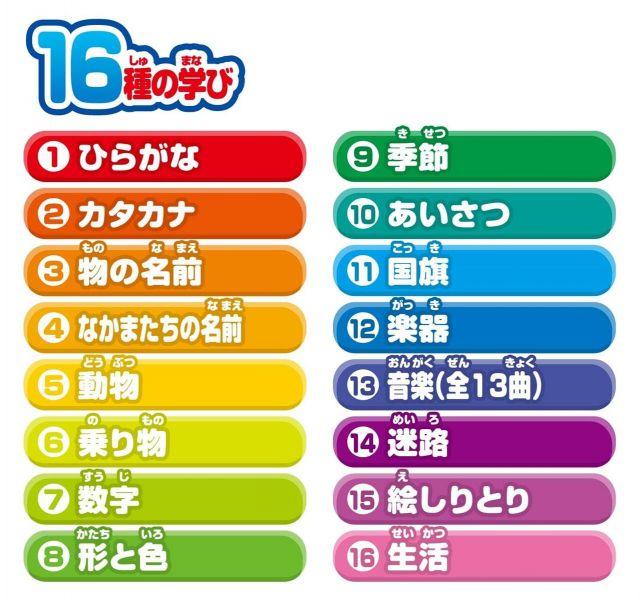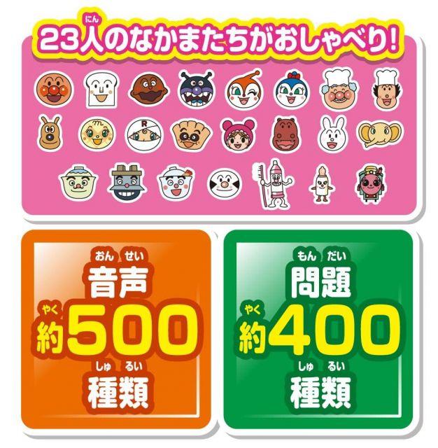 商品紹介●あいうえおがたくさん学べる!両面で遊べるシート12枚付き!●あいうえおに関するシートが13種、あいうえお以外におうた、色、形など様々な学びがつまったシートが11種付属!●学習内容はシート表裏を合わせて全24種類です。●シートを指でなぞると続けて音が鳴ったり、指を包丁に見立ててお料理したり、遊びがたくさん広がります。●アンパンマンのたくさんのなかまたちのおしゃべりを収録しています。安全警告特になし