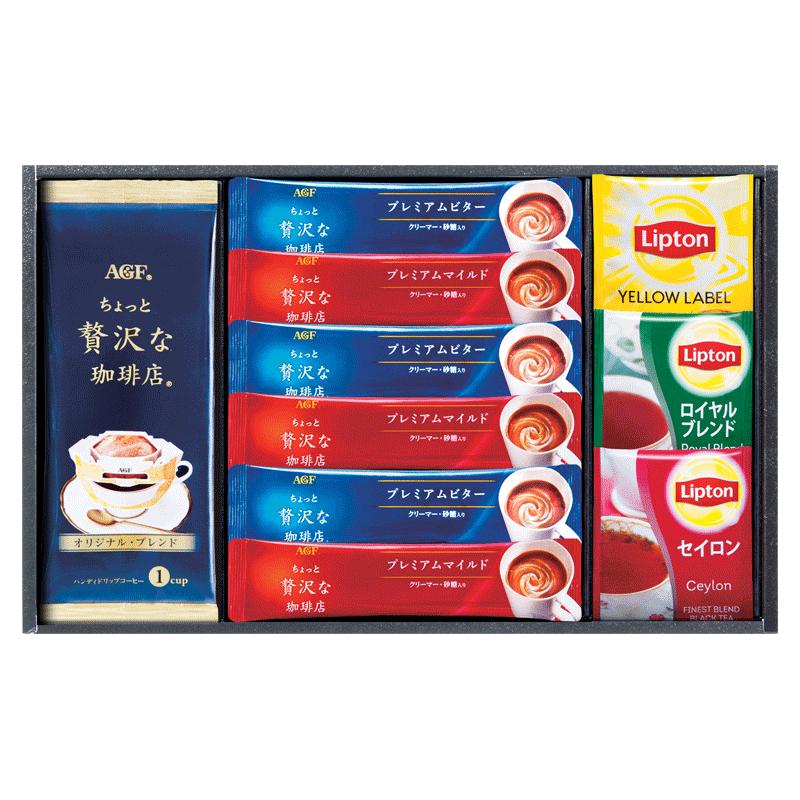 AGFちょっと贅沢な珈琲店・プレミアムビター7g×3、プレミアムマイルド7g×3、オリジナルブレンド8g、リプトン イエローラベルアルミティーバッグ2g、ロイヤルブレンドアルミティーバッグ、セイロンアルミティーバッグ各2.2g×各2