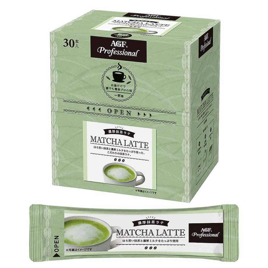 「誰でも簡単プロの味」。「AGF プロフェッショナル」は、ホテルのアメニティやレストランのドリンクバー、接客時のおもてなしなど、外食産業に携わる「プロフェッショナル」のパートナーとして、ユーザー様の使い勝手に合わせた"プロ品質"の商品の提供とロス削減やオペレーション改善、粉末だからできるアレンジメニューによるメニュー数増加など幅広いソリューションをご提案するAGFの業務用ブランドです。AGFプロフェッショナル 濃厚抹茶ラテ1杯用は、ほろ苦い抹茶と濃厚ミルクをたっぷり使った、こだわりの抹茶ラテ。1杯1杯がいつも新鮮な個包装スティックタイプ。手間いらずで誰でも簡単にプロのアイス抹茶ラテやホット抹茶ラテをお楽しみいただけます。ホテルのフロントサービスやお部屋、貸し会議室などのプレミアム&リッチなアメニティにもおすすめです。粉末タイプなので保管スペースも有効活用でき、必要な時に必要な量だけ提供できるので、ロスを削減しつつバラエティが広がります。本品1杯分(11g)当たり エネルギー:55kcal たんぱく質:0.66g 脂質:2.7g 炭水化物:7.1g 食塩相当量:0.09g (枠外) カフェイン:10mg ポリフェノール:100mg