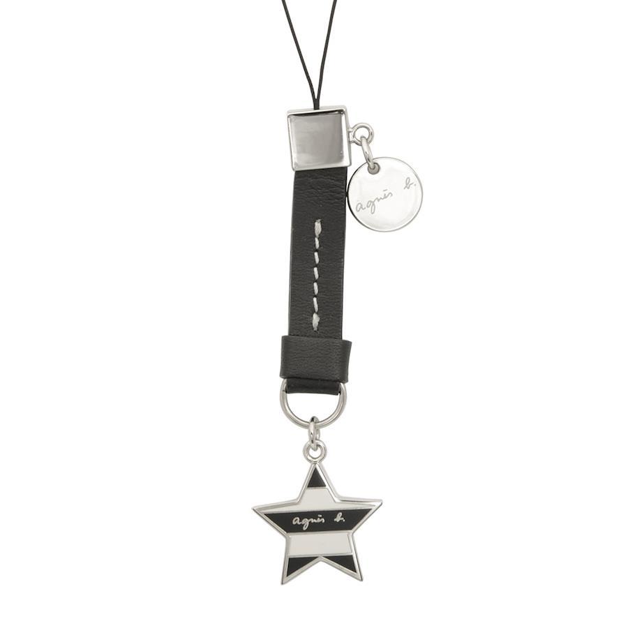 商品名:アニエスベー agnes b. 携帯ストラップ レザー ストライプ スター ブラック