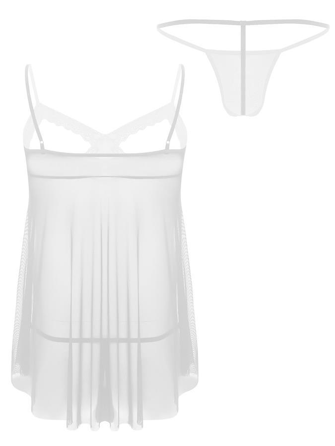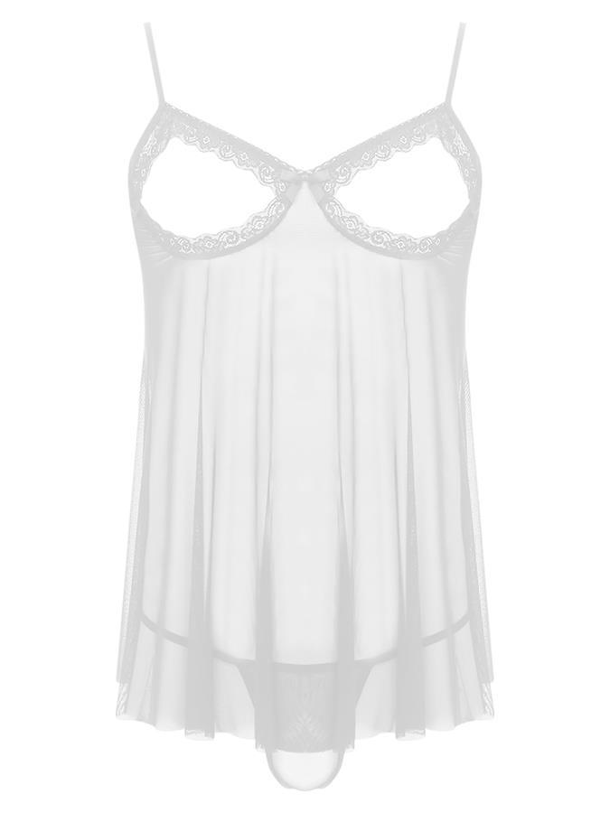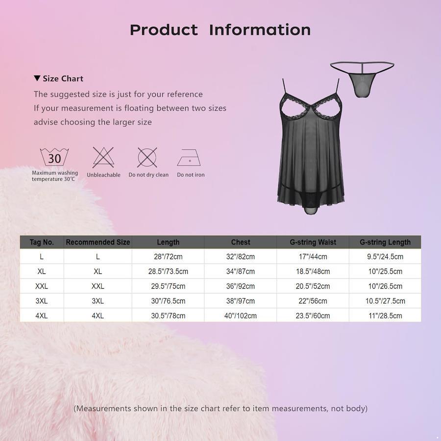 パターン 無地メンズ シースルー メッシュ ランジェリー セット レーストリム オープンブレスト ベビードール ドレス、G ストリング付き。柔らかい生地、通気性、肌に優しく、触り心地や着心地が良く、気分が良くなります。レースのトリムが施されたオープンブレスト、透け感のあるメッシュデザインが、恋人にとってあなたをより魅力的に見せます。フィット感を高める調節可能なスパゲッティストラップ、ローライズのGストリングとマッチしたミニ着丈ドレス。バレンタインデーのギフト、記念日、ハネムーン、結婚初夜、デートの夜に最適です。(#lf)(#lf)(#lf)商品購入前に、ストア紹介ページをご確認ください。