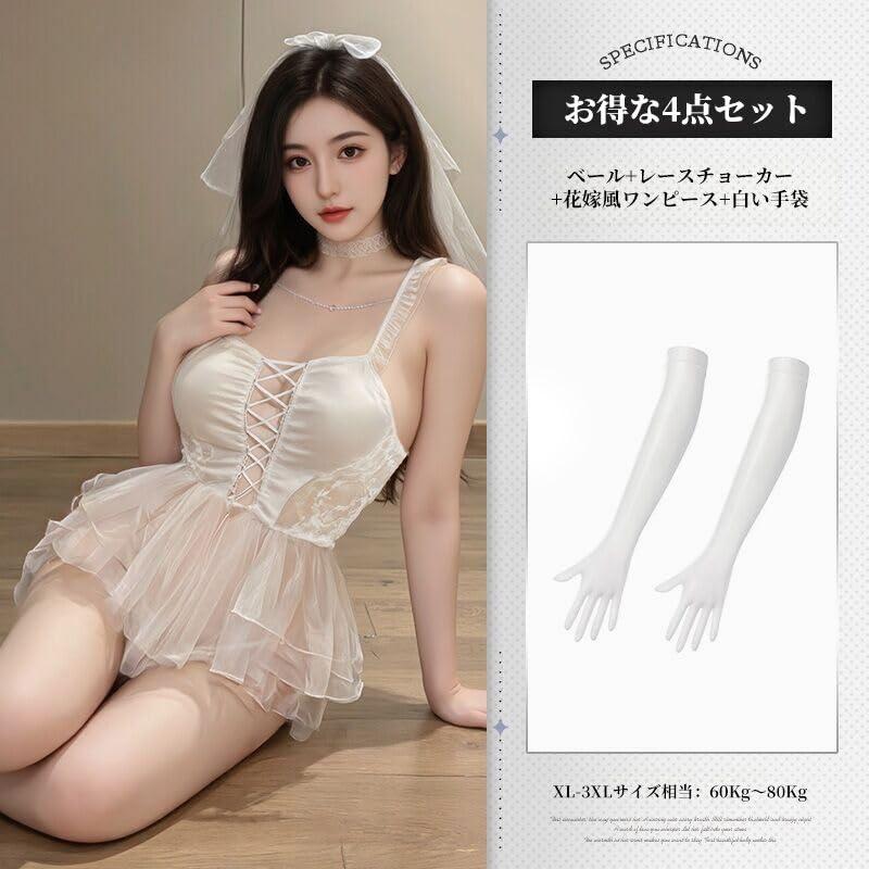 花嫁風の可愛らしいデザインが特徴的なセクシーランジェリーセット。での取り扱い開始日?:?2025/5/15ASIN?:?B0F8Q85CQ3商品モデル番号?:?CTWHN0399売れ筋ランキング:ドラッグストア-339,651位(ドラッグストアの売れ筋ランキングを見る)セクシーランジェリーセット-954位登録情報取り扱い案内 洗濯機洗い【お得な4点セット】ベール+レースチョーカー+花嫁風ワンピース+白い手袋【大きいサイズ(XL-3XLサイズ相当)】ベール丈42cm、着丈78cm、バスト70-100cm、Tバックウエスト72-120cm、体重:60Kg~80Kg;【可愛いなウェディングドレスコスプレ】花嫁風の可愛らしいデザインが特徴的なセクシーランジェリーセット。レースとリボン、ボリューム感のあるスカートが魅力的で、特別な日やコスプレにぴったり。露出度満点可愛い花嫁コスプレがお楽しみ頂ける。 そのドキドキ感、ワクワク感の醍醐味を是非味わってみてください。【エッチな服】蝶の形をした可愛らしいリボンベールと、優雅なデザインが花嫁気分を引き立て、胸元に施されたレースとクロスバンドが、女性らしさを強調し、セクシーでエレガントな印象を与えます。メッシュ素材で作られたふんわりとしたスカートが、動くたびに華やかさをプラスし、視覚的に魅力的なシルエットを作り出します。首元にチェーンがついており、セクシーなアクセントとして全体のデザインを引き締めます。【ぽっちゃり コスプレ セクシー】豊満な体型の方でも、魅力的に着こなせる大きいサイズのベビードール。体型を考慮して作られており、快適さと美しさを両立させています。彼氏との記念日やバレンタインデー、ハロウィン、クリスマスなど特別な日に大活躍するアイテムです。(#lf)(#lf)(#lf)商品購入前に、ストア紹介ページをご確認ください。