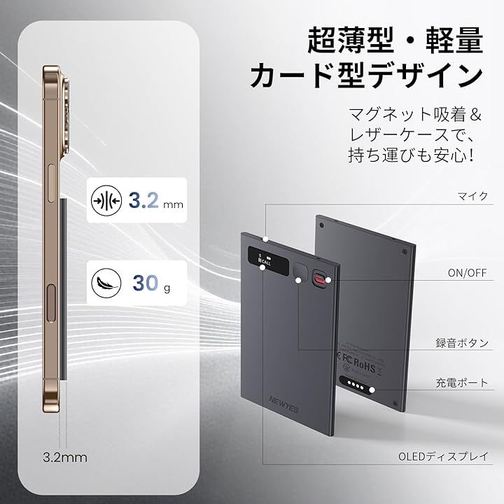 「超薄型・軽量デザイン&マグネット吸着機能&64GB大容量ストレージ」厚さわずか3.2mm、重さ30gの超薄型・軽量デザイン。