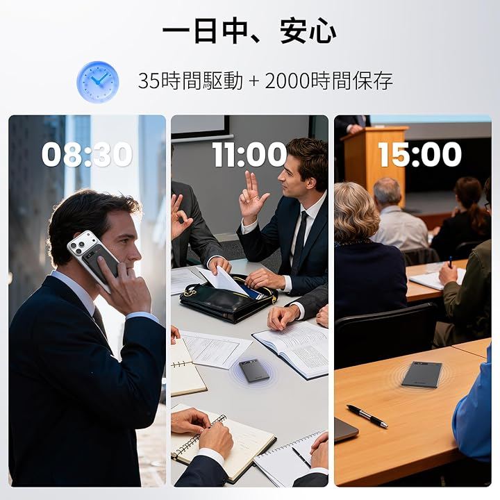 「400mAh大容量バッテリー&最長35時間連続録音」大容量バッテリー搭載で、長時間の録音も安心。