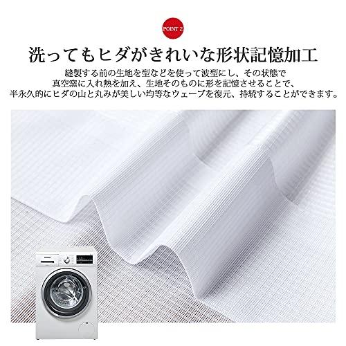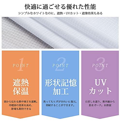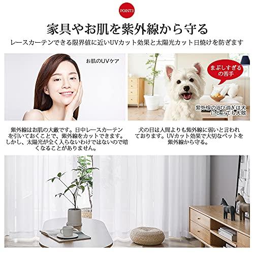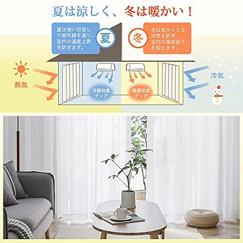 【UVカット】紫外線を吸収したり、反射したりする特殊な繊維を利用しており、可視光線は通して明るさは確保しながら、UVカットできるレースカーテンは家具やカーペットの色あせも防ぐことができます。 【遮?保温】熱や冷気を通しにくいことも大きなメリットです。夏はお部屋の室温上昇を、冬は室温低下を防ぎ、冷暖房効率がアップします。月々の電気代節約も期待できます。 【プライバシー保護】レースカーテンで昼でも夜でも外から見えにくくしました。プライバシー対策に最適。 【洗濯機対応】洗濯機でまるごと洗えます。お手入れしやすいのでいつも清潔に使用できます。カーテンの重みで洗濯ジワも伸ばすことができので、形態安定としてはとても効果が期待できます。 【形状記憶】形状記憶加工、お洗濯後のお手入れがぐっと楽になる、主婦のつよーい味方です!