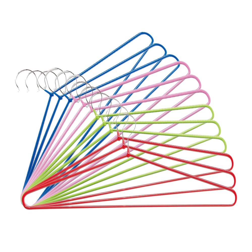 傾けてもピタッとキープ! ノンスリップコーティングですべりにくく、薄型なのでクローゼットもスッキリ! 。襟が大きく開いた服やすべりやすかったスラックス、耐荷重2kgなので重いコートに掛けられます。 【商品仕様】サイズ/(約)41×18×0.5cm(1本あたり)、内容量/12本組(各色3本)、耐荷重/2kg、材質/スチール(塩化ビニル樹脂コーティング) 【傾けてもピタッとキープ】すべりやすいスラックスに、型崩れを防ぎたい服に、ノンスリップコーティングですべりにくい! 【スリムで薄型】省スペースで収納上手に。クローゼットの空き容量を増やす薄型(0.5cm)タイプの12本組 【肩幅約41cm】肩幅41cmの衣類に対応、耐荷重は2kg。襟が大きく開いた服や重いコートにも