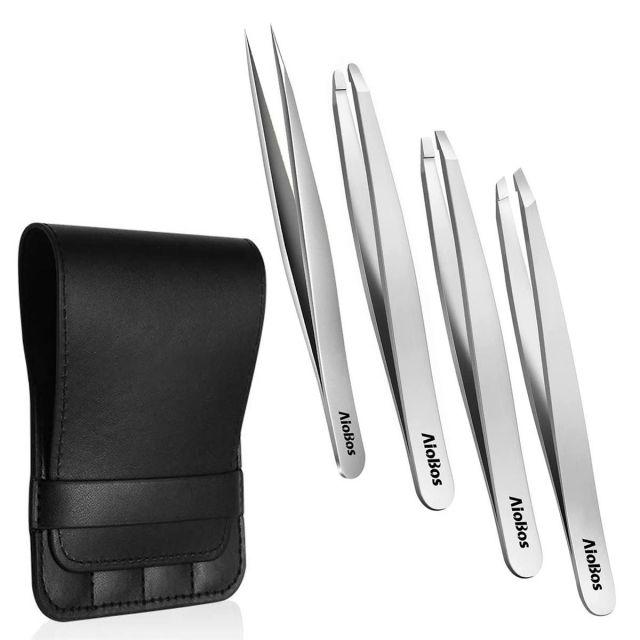 スタイル:4点セット◆商品名:AioBos毛抜きピンセット4点セット(先斜めで+先丸タイプ+フラットな口元+先細め先尖)精密熱処理済みサンドブラスト眉毛抜き鼻毛ヒゲとげぬき処理男女兼用収納ケース毛が簡単に正確に毛を抜く