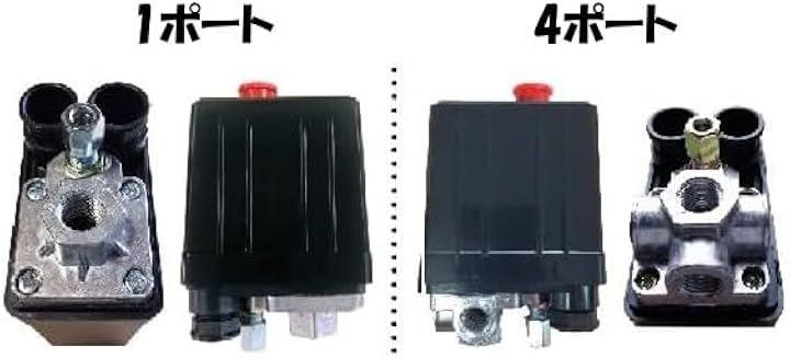 4ポートはスイッチに 安全弁 、 圧力計 、 レギュレター などが 繋がっているタイプで 繋がっていない場合は1ポートタイプです。
