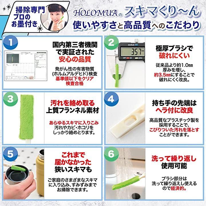 HOLOMUAのスキマくり~んはエアコン掃除ブラシ用としてだけではなく、便座の隙間、洗面所の水垢、キッチンのコンロ周り、洗濯機の隙間、水筒 ブラシ、車のエアコンなど多機能に利用可能です。
