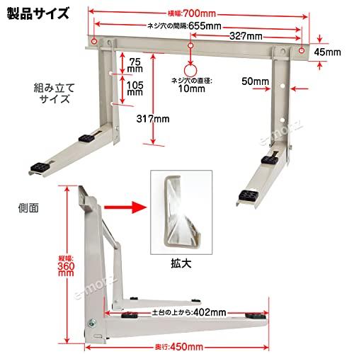 通常1-5営業日で発送:壁掛けブラケットならお庭やベランダがスッキリ!大きな室外機を無くして広々空間に!■ 小スペースタイプ。 許容重量160kgまでのエアコン室外機をコンパクトに設置できます。 壁掛けタイプなので壁があれば、ほとんどの場所に設置可能です。 ■ 折り畳める。 折りたためるのでエアコンを使わない時やエアコン設置前で使用しない間は場所を有効活用できます。 ■素材:スチール製 ■荷重量:最大160kg ■サイズ:(最大)幅700mm×高さ360mm×奥行き460mm