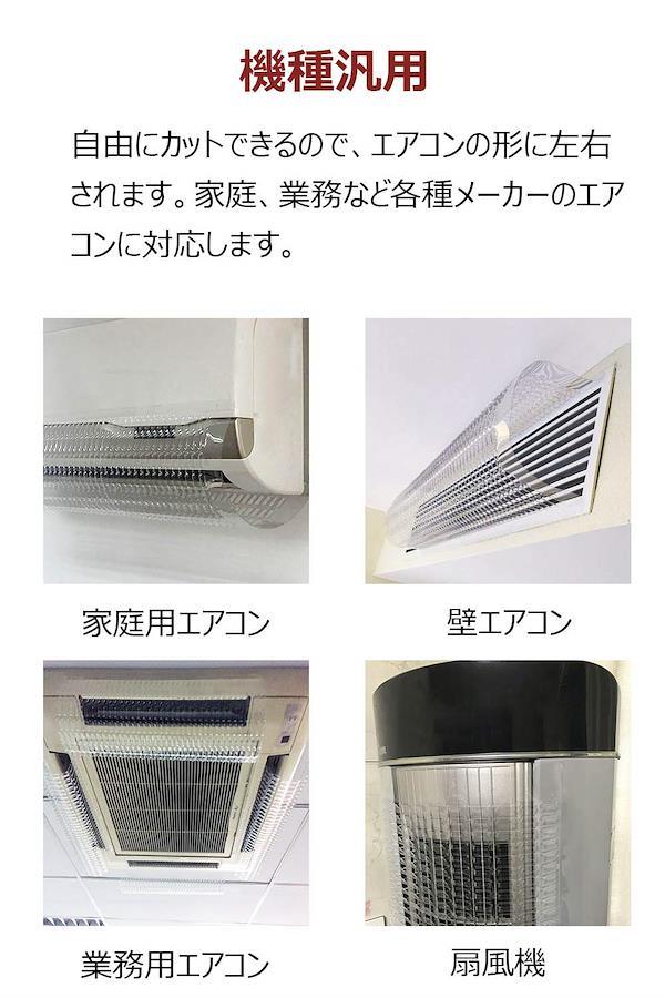 3営業日以内に発送≪新品未開封品≫:直撃風を自然に解消:特別な528個の鱗形穴デザインで風を横に発散させ、1メートル以外から風がなくなり、角度や風向き調整の工夫をせずに、エアコンの直撃風を自然に解消。吹き出しの近くに座っても大丈夫。エアコンの風による夏の冷えすぎ、冬の熱すぎ、ほてり、肌、目と喉の乾燥にバイバイ落下防止エアコン風除けカバー:本体超軽量で(重量:110g)、また超強力透明両面テープ3m付き、重力に負けて垂れてきたり、落ちたりすることはない。両面テープは残り跡を残らず剥がせますので、跡が気になる賃貸にもおすすめ貼っても目立たない:透明で圧迫感もなく、お宅でも会社でも違和感なくよく馴染みます。そしてエアコンの液晶表示に影響を及ぼさなくて、制御信号にも邪魔はしません装着簡単・傷なし:直接エアコンに接着タイプで、板や布タイプよりも、取り付けが簡単。「ネジ」や「穴あけ」などの工事が不要なので、天井や壁を傷める心配もありません。家庭・業務機種汎用:本体の幅(34 x 80cm)が自由にカットできるので、エアコンの形に左右されます。家庭、業務など各種メーカーのエアコンに対応します(壁掛けタイプ/天井埋め込みカセット
